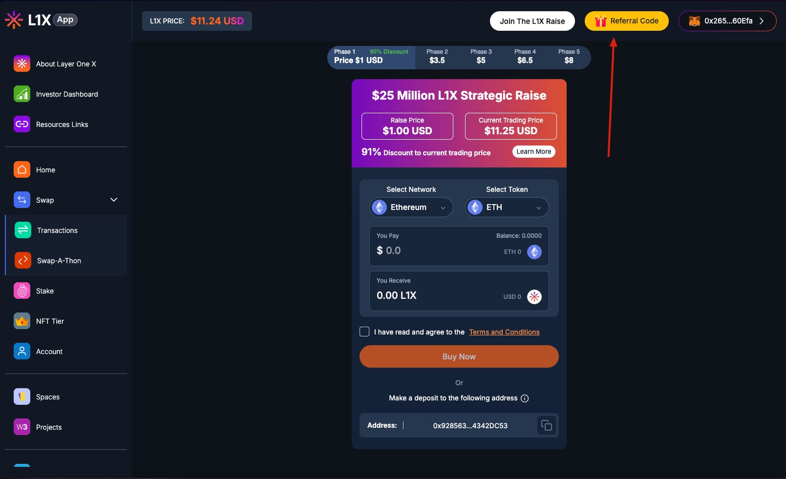 Layer One X now rewards you for growing the community. With the new Referral Program, you earn 10% of every investment made using your referral code, and your referred investor gets 5% bonus L1X tokens — a win-win for everyone. Best of all, the rewards are automatically deposited to your connected wallet after each tranche is completed. No delays. No manual claiming. Just passive earnings.