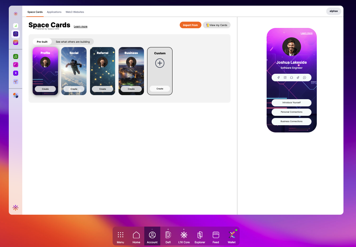 - Select the Account Icon on the Dock, and click on 'Space Cards'