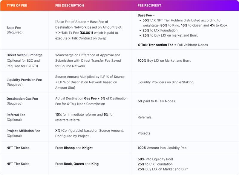 - Swap Technology Usage: Fees earned from L1X’s cross-chain swap technology, which allows assets to move seamlessly across different networks.