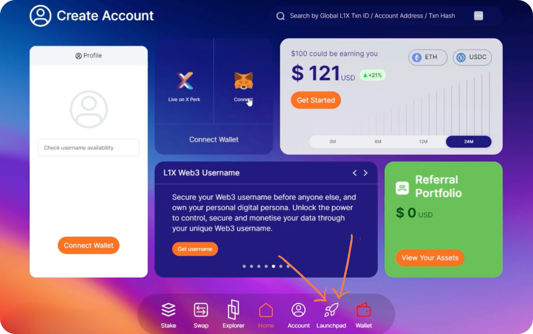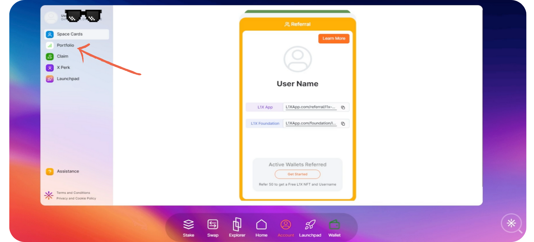 - To view your L1X App NFT, go to the 'Account' section, then select 'Portfolio' on your left