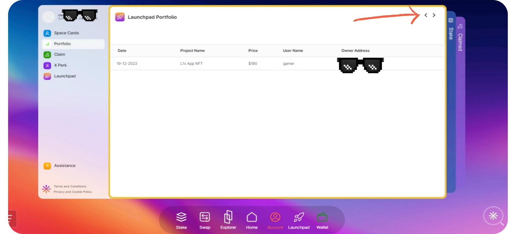 - Use the Space Card on the right side or top arrows to navigate to your Launchpad Portfolio.