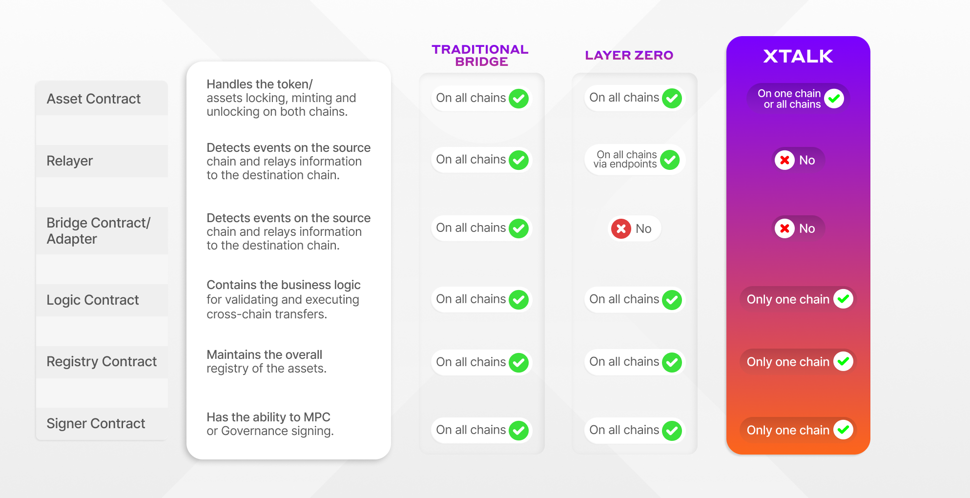 Layer One X’s decentralized interoperability technology does not require a third party. It only requires a few extra lines of code to establish the direct transfer of data and assets between two or more blockchains simultaneously. The L1X technology makes us the only clear choice for a decentralized interoperability solution by removing the need for blockchain bridges.